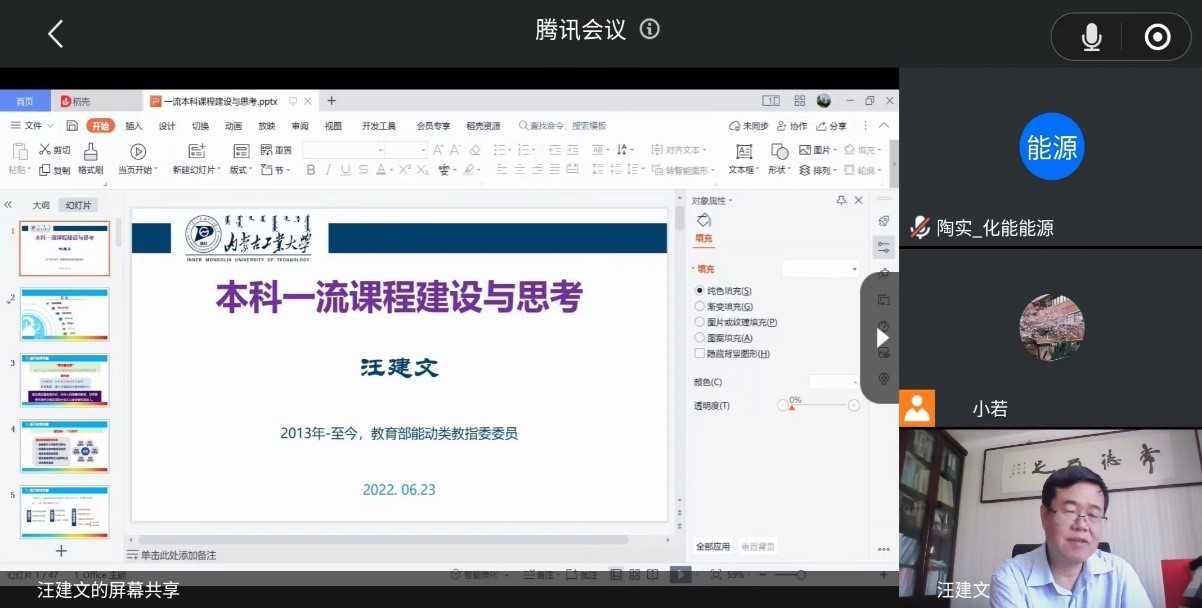 2022年6月23日,为加快推进能源系一流本科课程建设,提升教书育人的水平,教育部能动类教指委委员、好色tv 特聘教授汪建文老师应邀为能源系就一流本科课程建设作线上交流指导。会议由能源系系主任郭晓娟主持,能源系全体教师参会。 会上,汪建文教授为与会...