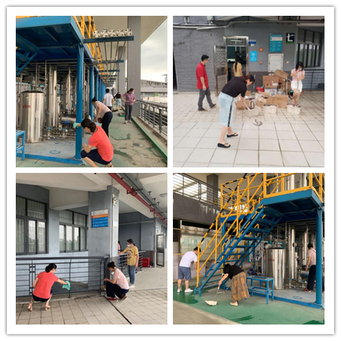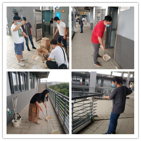 党员干部带头,拿起拖把、扫把、抹布等工具,从实验室内的桌椅、地面打扫到实验室外的走廊,甚至连走廊栏杆都用抹布擦得干干净净,办公区域焕然一新。