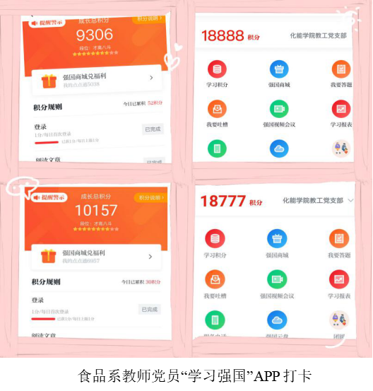 学习是党员干部掌握知识、开展工作的重要方法,更是增强党性、坚定信仰的重要途径。疫情时期,食品教师支部全体党员通过“学习强国”APP学习习近平新时代中国特色社会主义思想、习近平总书记最新发表的重要讲话和重要指示批示精神;学习学习新型冠状病毒科学防护知识、国家防疫新政策等内容;坚持做好不停学,始终加强理论学习,不断提升政治素养。