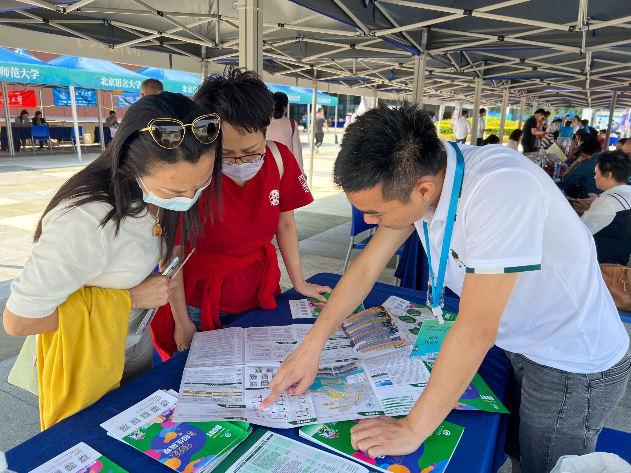 据悉,本次联合招生咨询会由北师港浸大(UIC)主办,活动得到中山、珠海两地招办的大力支持,吸引了来自全国不同地区18所兄弟院校、5000多名考生、家长和校友嘉宾共同参与。我校作为唯一一所广东高校代表,受到广大考生和家长广泛关注,吸引现场众多家长考生咨询。
