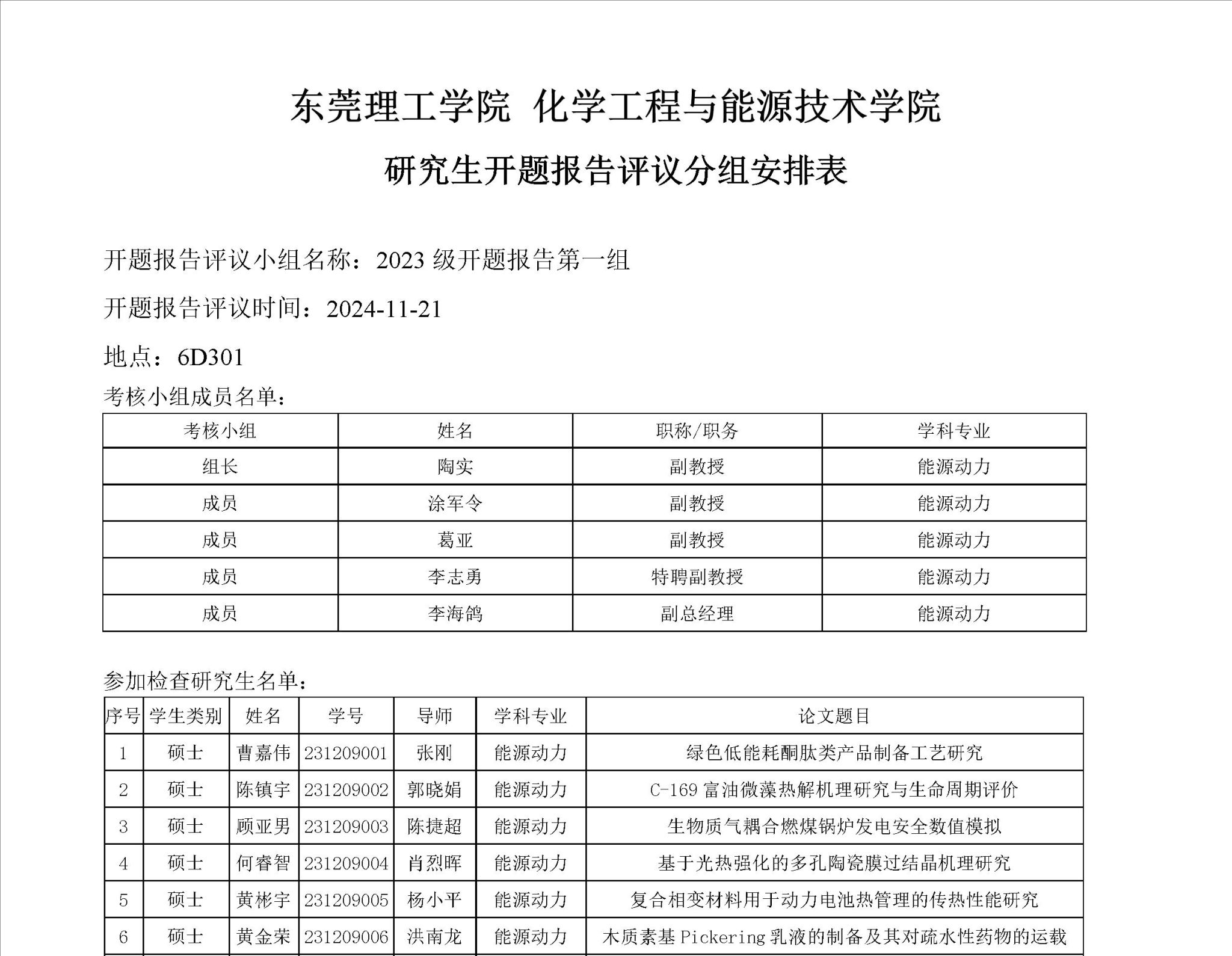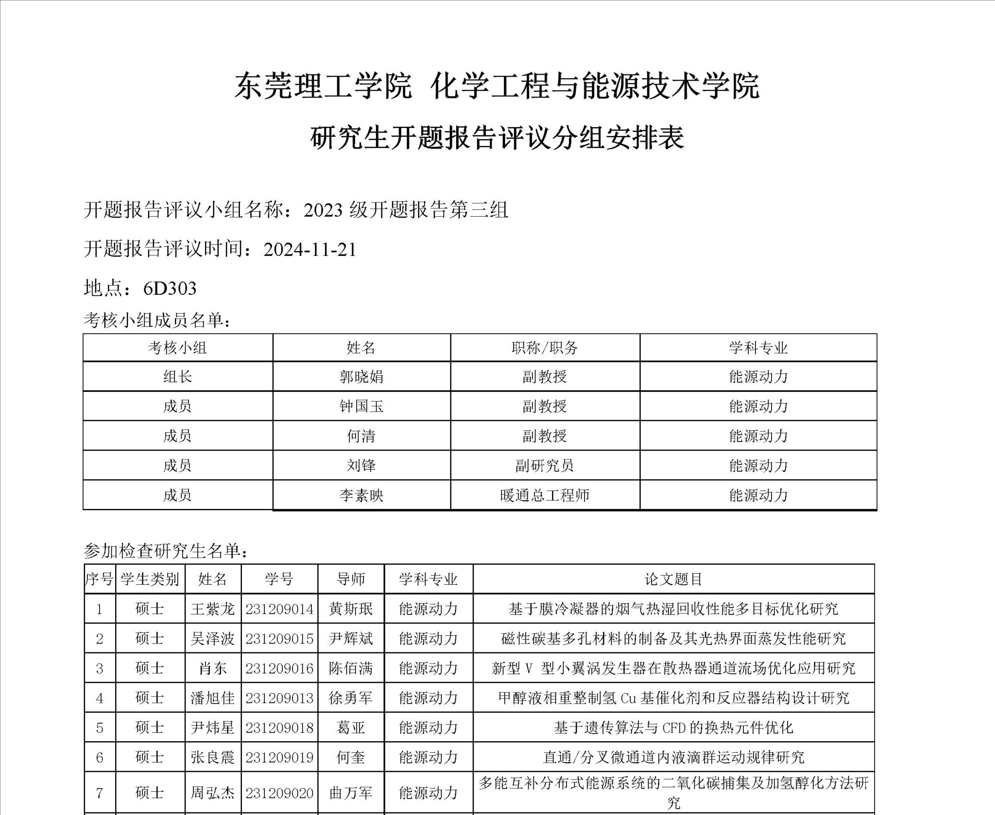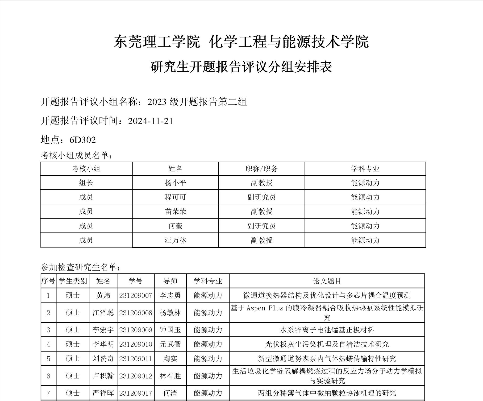 好色tv 能源动力学位点2023级研究生开题报告评议安排如下: