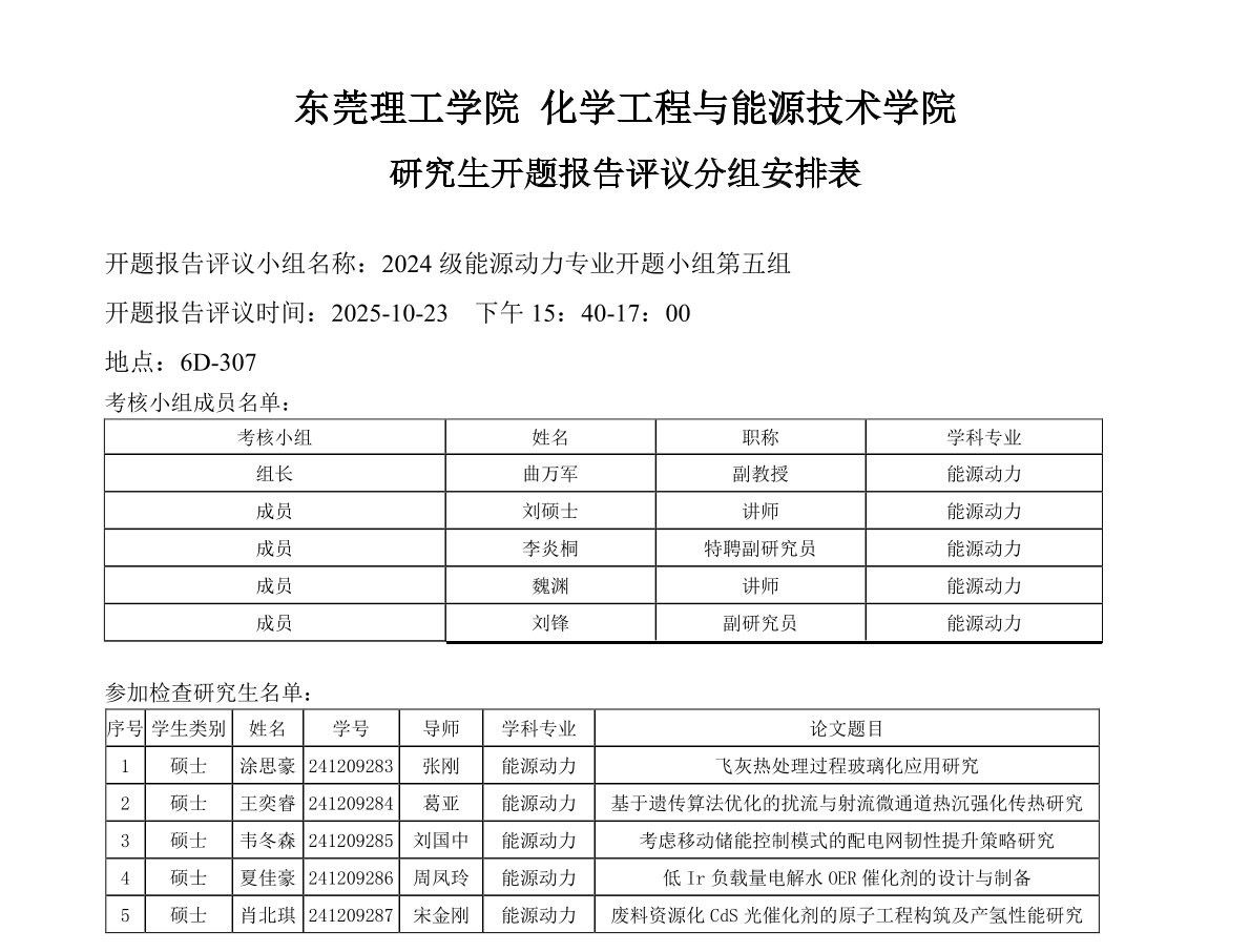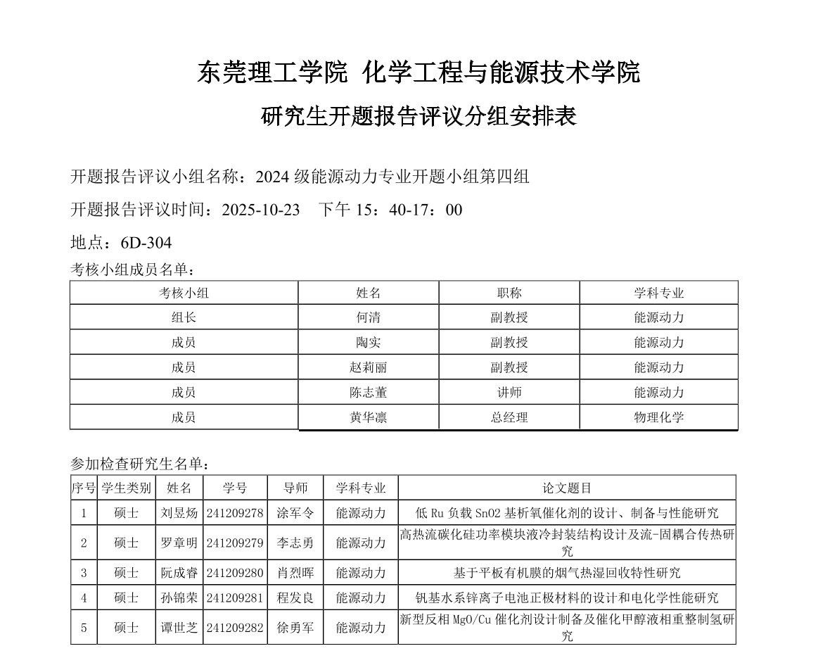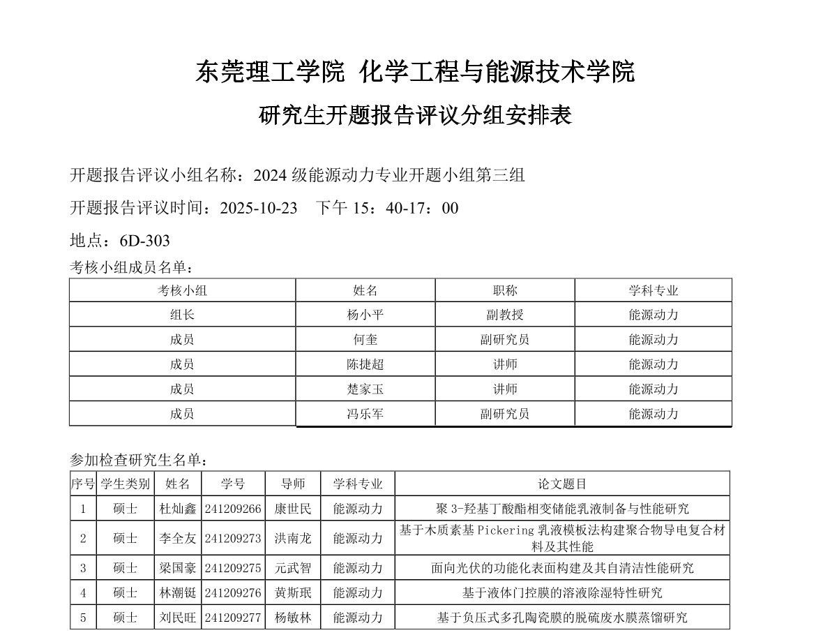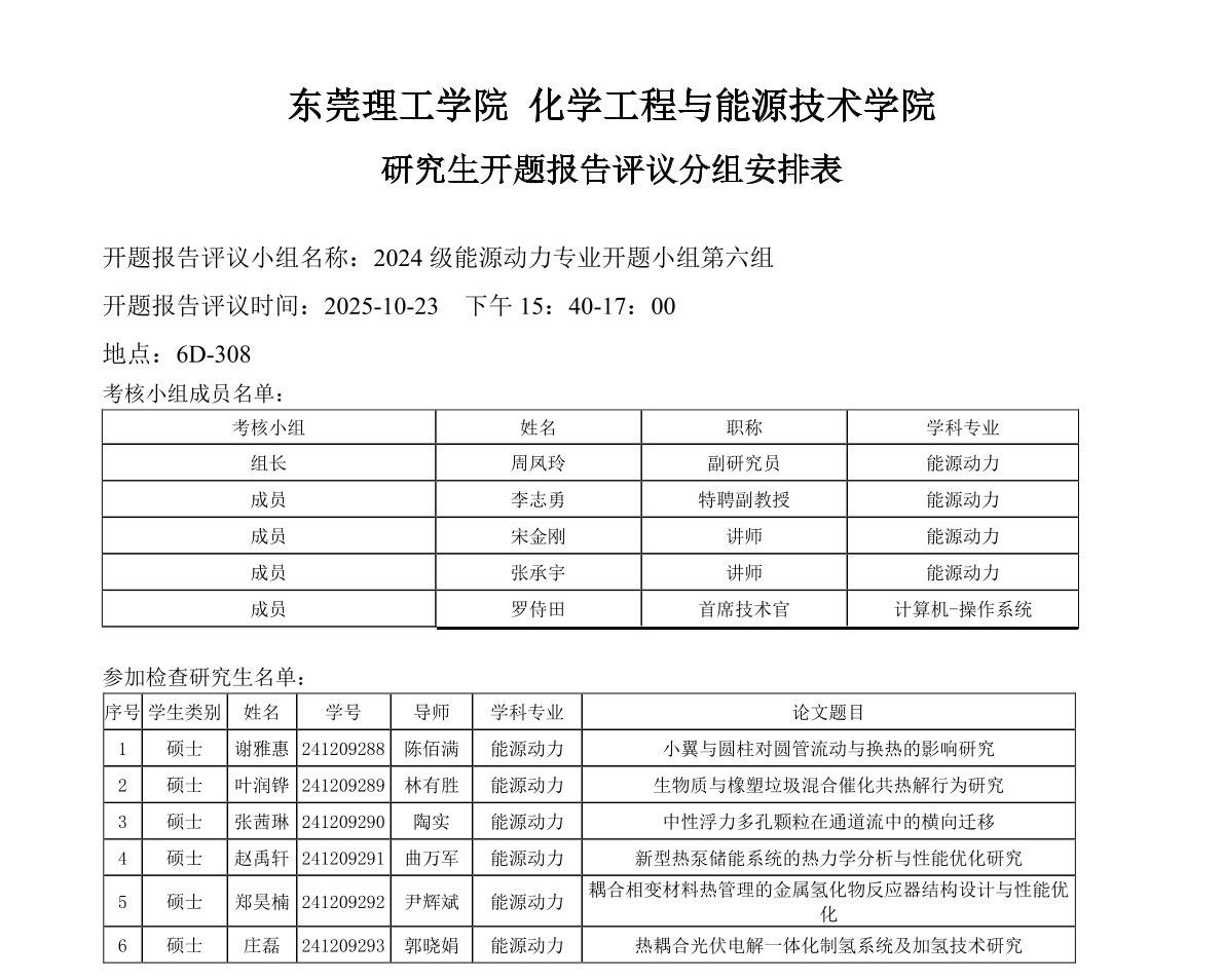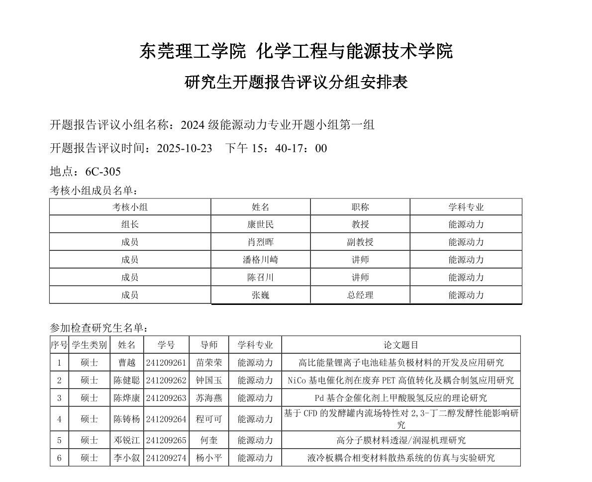 好色tv 能源动力学位点2024级研究生开题报告评议安排如下: