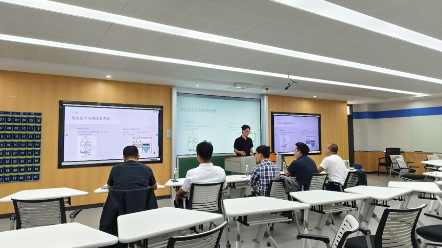 组织2025级能源动力专业学位硕士研究生进行了为期三个月的选题实践。10月23日,为检验研究生选题实践成果,系统展示校企合作育人成效,学院组织开展了2025级能源动力专业学位硕士研究生选题实践汇报。本次汇报邀请了中国科学院工程热物理研究所、“吴仲华班”联合导师韩东江特聘研究员,广东威能检测技术有限公司副总经理朱华,广东迪奥应用材料科技有限公司总经理黄华凛,东莞市秦简计算机系统有限公司首席技术官罗侍田,东莞市美泰喷雾技术有限公司总经理张巍,与校内导师共同组成“学术+产业”双轨评审小组,对学生三个月的选题实践成果进行集中检验。