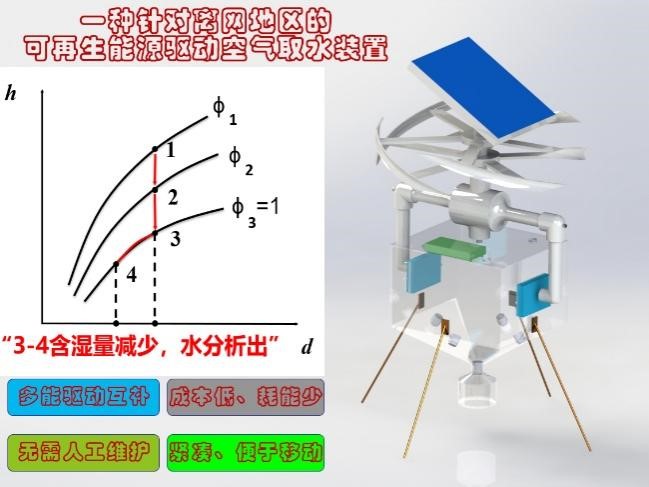 2.一种针对离网地区的可再生能源驱动空气取水装置(项目队员:龙云飞、黄赐坤、洪茄祥、林敏榆;指导老师:曲万军、王文豪)