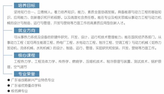 本专业为广东省重点学科,校硕士博士点重点建设学科,学科综合实力排名省内前列,专业内多能源互补分布式能源系统技术是国家能源局公布的十大节能技术之一,已形成了广东省分布式能源系统重点实验室与动力工程及工程热物理省级重点建设学科平台等为支撑的学科体系。