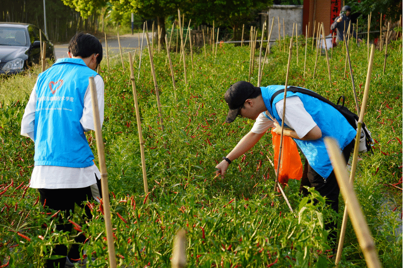 为增强新时代青年大学生社会责任感,实践队队员主动参加劳动教育,在进行辣椒产业调研之余,实践队队员深入到农户家中、田间地头,帮助村民摘辣椒、拔花生,缓解农忙农户劳动力短缺问题。通过亲身体验农业劳作,队员们对农耕文化有了更深刻地理解,并在相互配合中增强了团队成员间的凝聚力和协作力。