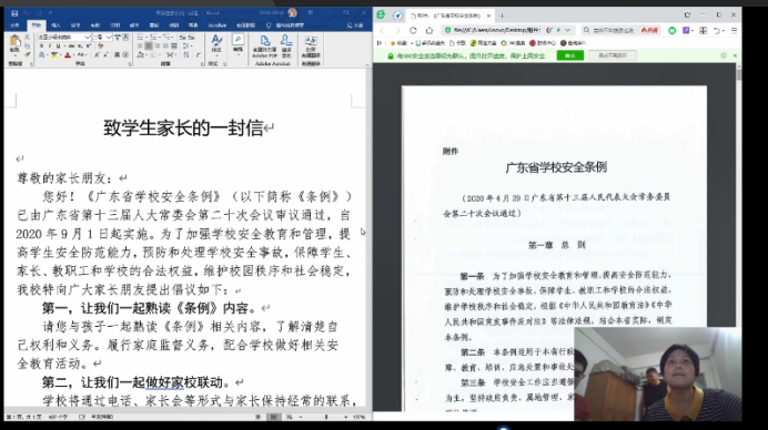 各个班级以腾讯会议的形成与各位家长在线共同学习、熟读《条例》。同时,各位班主任讲解了《条例》中重点内容,以便同学们有更好的理解。