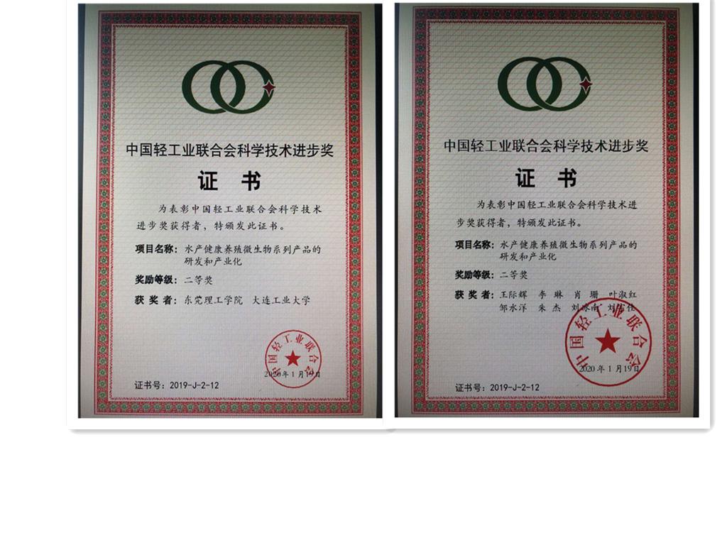 王际辉教授主持的“水产健康养殖微生物系列产品的研发和产业化”项目获得2019年度中国轻工业联合会科技进步二等奖。