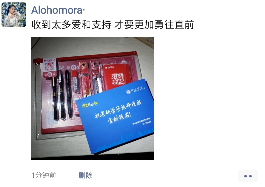 对考研学子细致的关怀与殷切的期盼。收到学院的慰问,同学们纷纷表示定会牢记老师们的嘱托,竭尽全力进行考研的最后冲刺,不辜负学校对自己的栽培,不忘初心,不负韶华。