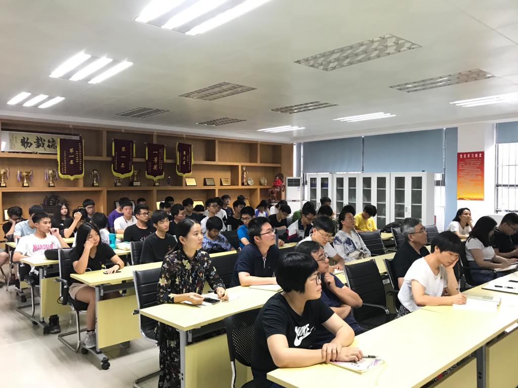 党总支书记夏勇、党总支副书记柳卓君与师生代表一起观看学习习近平总书记在纪念五四运动100周年大会上的重要讲话。