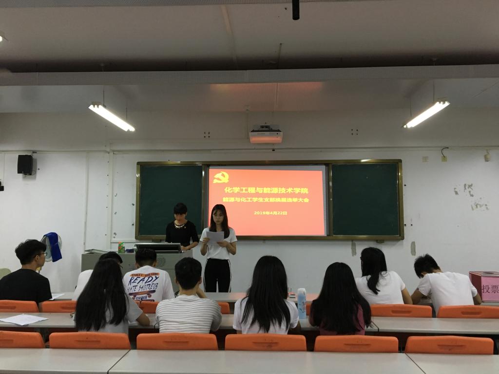能源与化工学生支部委员会党员大会的批复》,并介绍候选人预备人选简况,与会党员讨论表决通过了选举办法、委员候选人预备人选及监票人人选。随后,有选举权的党员差额投票选举产生新一届委员,分别是蔡瑞鹏、温学诚、涂叶满(以姓氏笔画为序)。