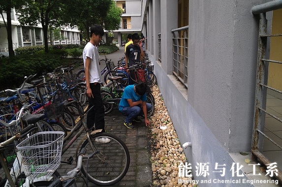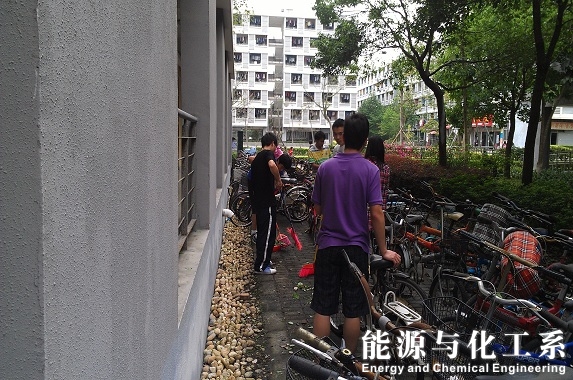 同学们按原来分好的工作,力气大的同学移开自行车,让其他同学拔草、扫树叶、搬开堵住水沟的石头,扫完后再把自行车摆好,起初,有些路过的同学看到志愿者们在工作,志愿者们都因为自己在女生宿舍干活而感到难为情,后来就没顾忌那么多了。虽然天气有点热,工作也较辛苦,但是志愿者们都有说有笑的,期间还和阿姨聊天。后来阿姨为了谢谢志愿者们,叫保安叔叔送来了矿泉水,但是志愿者们都婉转谢绝了,因为志愿活动是不求回报的。