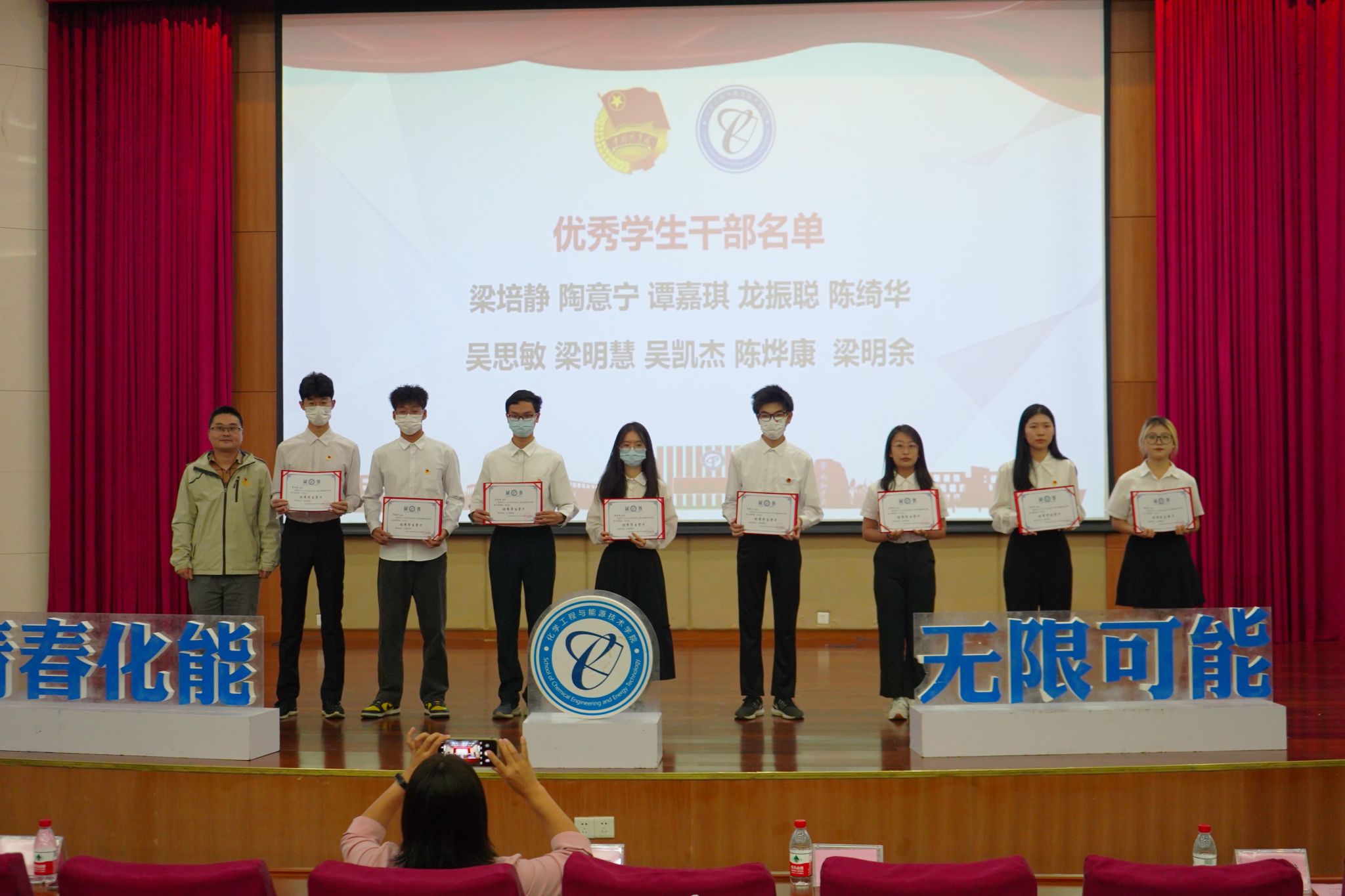 政治辅导员张博为第六届团委、学生会优秀部门、优秀学生骨干及第四期青马班优秀学员进行表彰并颁发荣誉证书。