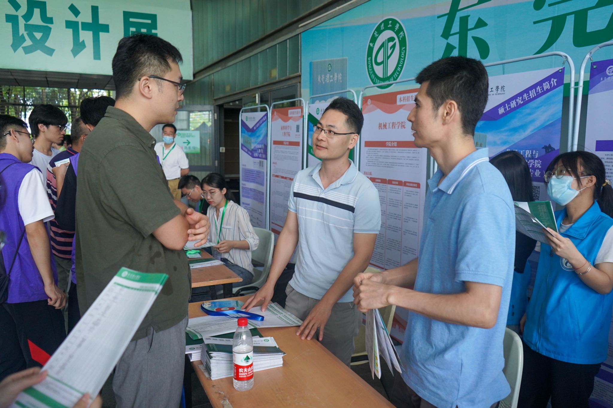 此外,在图书馆设有我校及各二级学院的咨询点和其他广东地区的高校资讯点,咨询展台气氛火爆,人流熙攘。考生和家长针对自己的兴趣和成绩等具体情况,来到对应的院系前进行咨询,现场工作人员和师生志愿者热心、耐心且细心,对咨询者的问题作出细致准确的回答。