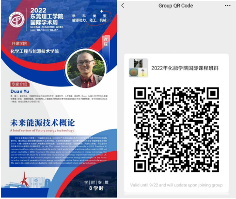 将开展一门国际课程,邀请英国帝国理工学院Duan Yu博士讲授“未来能源技术概论”,助教为何奎博士,计划采用线上线下结合的方式进行,以下是专家简介和国际课程的内容简介,以及国际课程的海报和预报名微信群,请感兴趣的同学提前加入微信群,向老师了解具体课程信息,包括授课时间、方式和内容等。