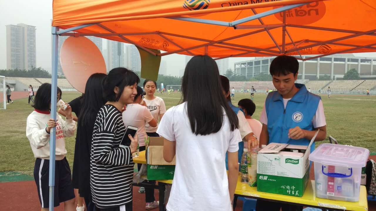 为了给在运动场体测同学做好储物、医疗、补给工作,弘扬青年志愿者“奉献,友爱,互助,进步”的志愿服务精神,好色tv 志愿服务站组织志愿者于2017年11月18、19日在运动场为参加体测的同学补给能量。