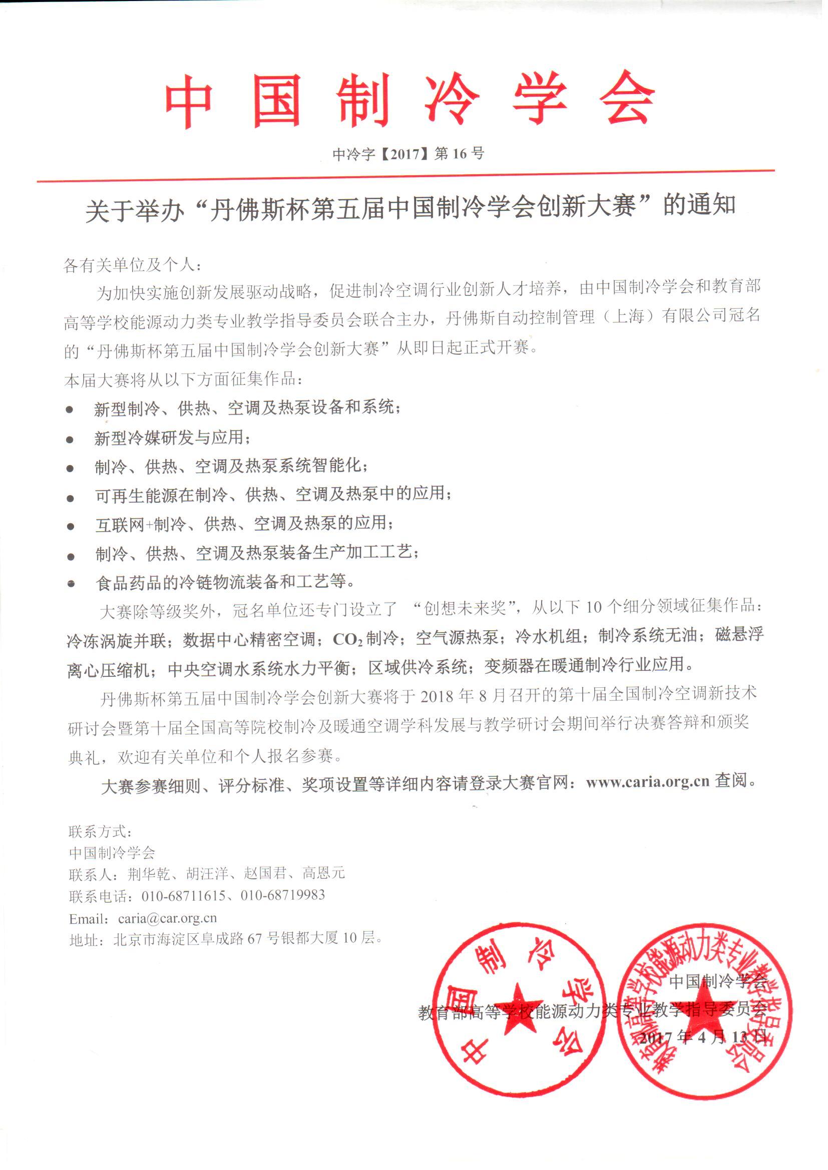 丹佛斯杯第五届中国制冷学会创新大赛开始啦!